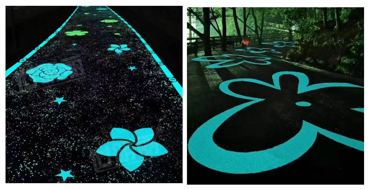 В декоративном дизайне светящиеся краски и плитка являются популярным выбором для уличных пейзажей, бассейнов и акцентов дизайна интерьера. Эти материалы не только повышают эстетическую привлекательность, но и способствуют безопасности, отмечая ступени или края в ночное время.
